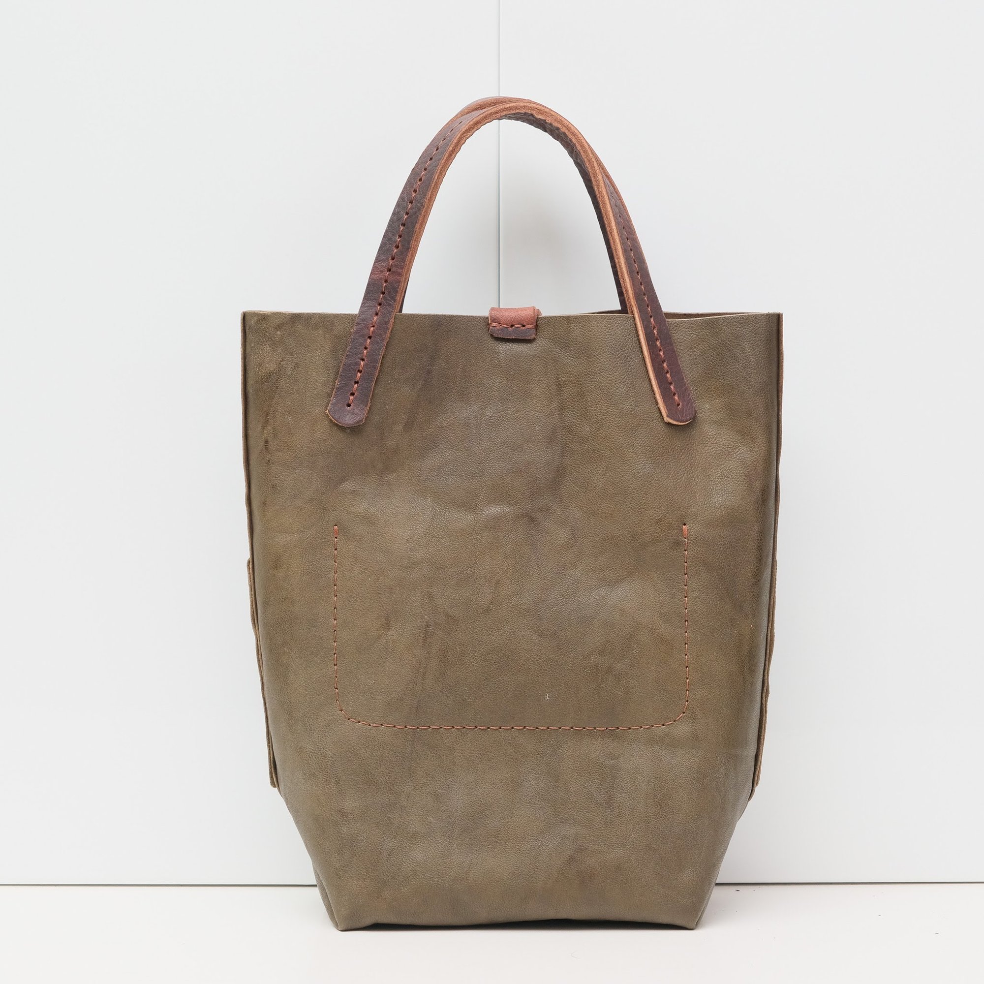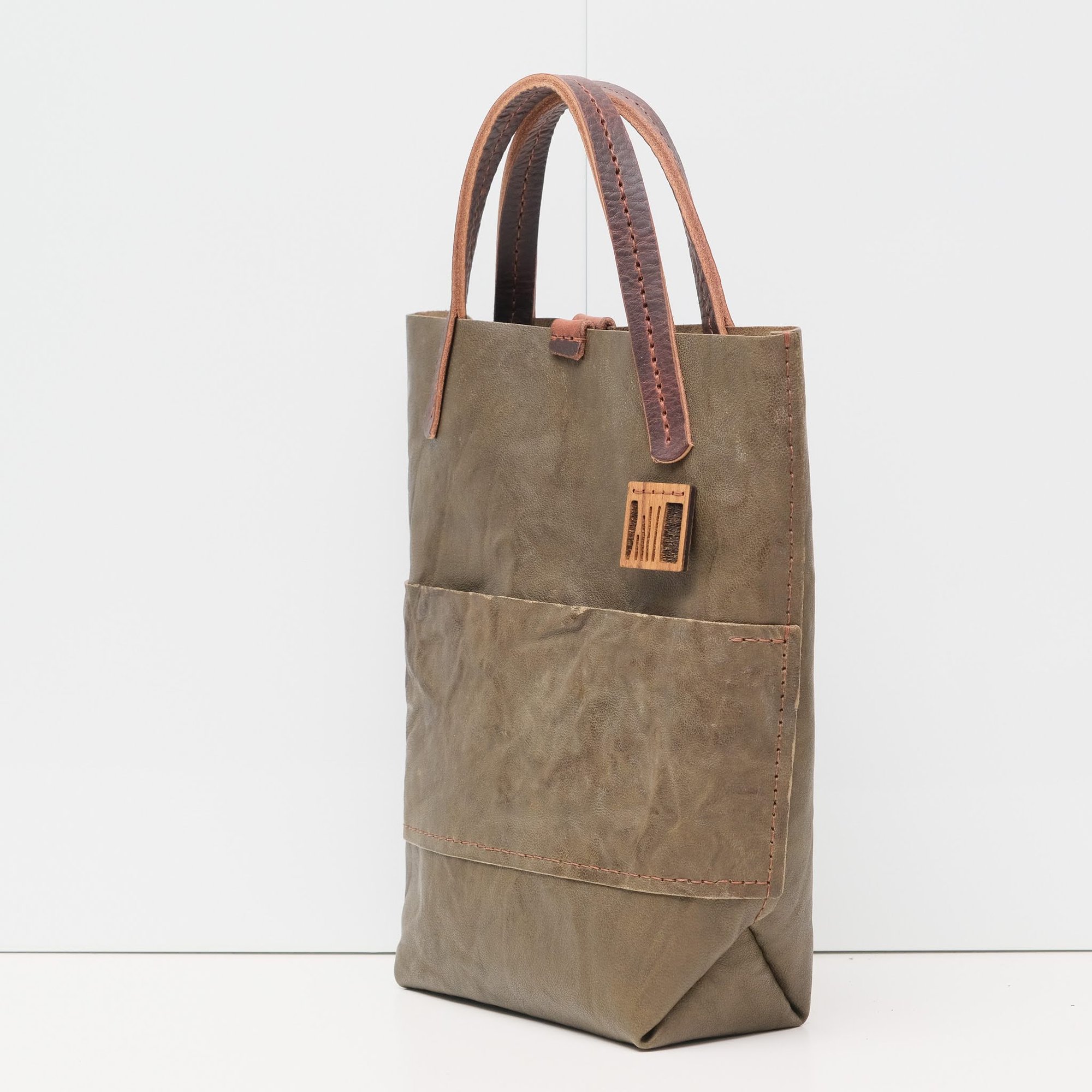 body -crumpled olive green leather with a matte finish