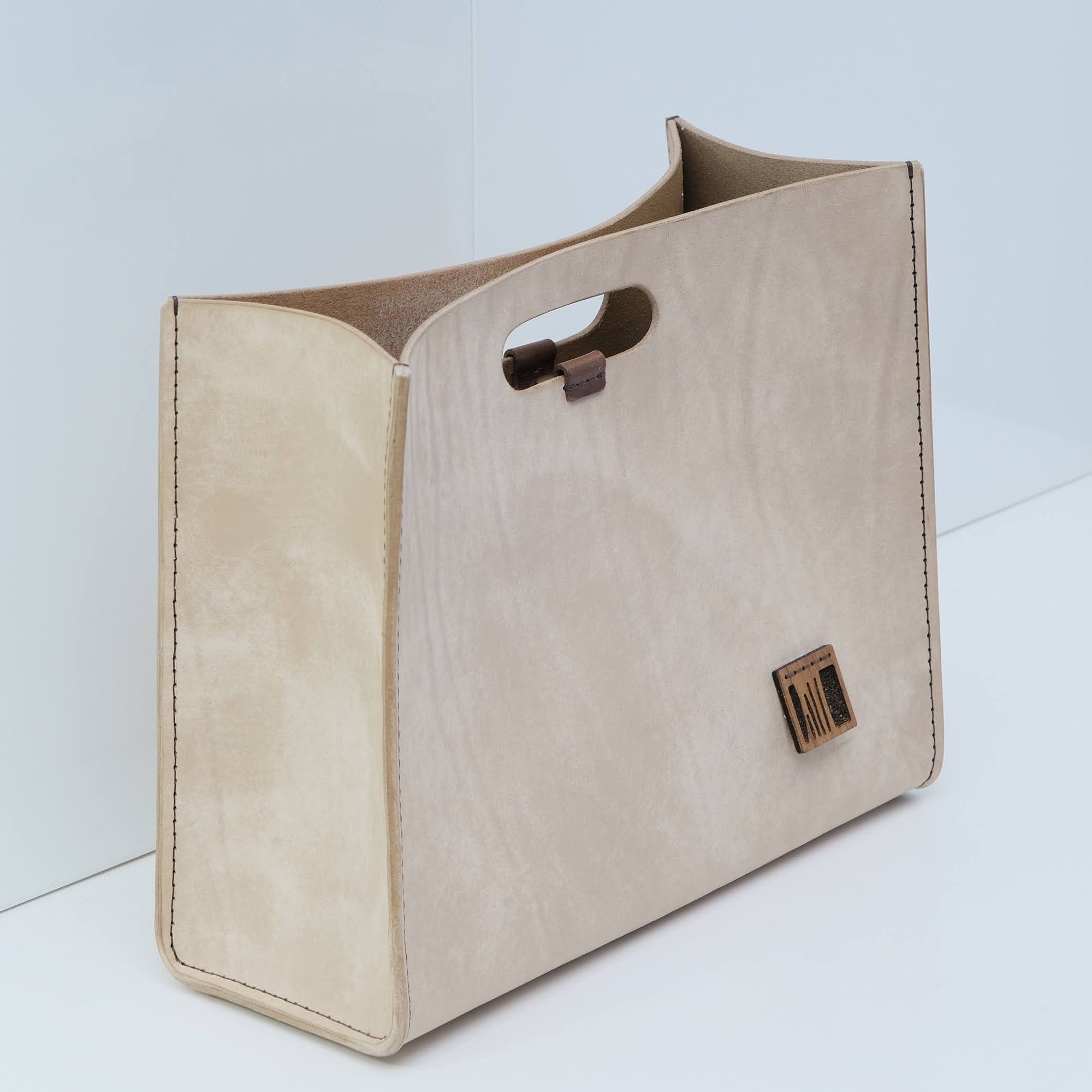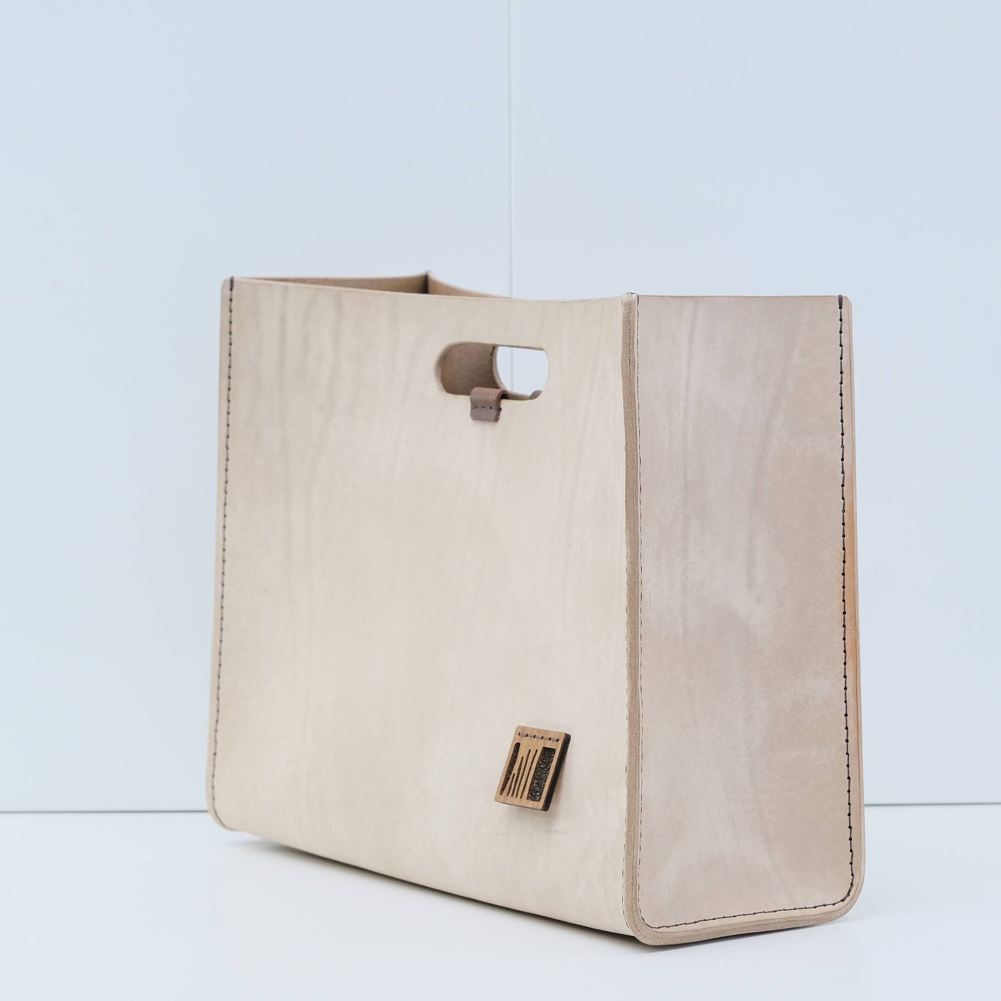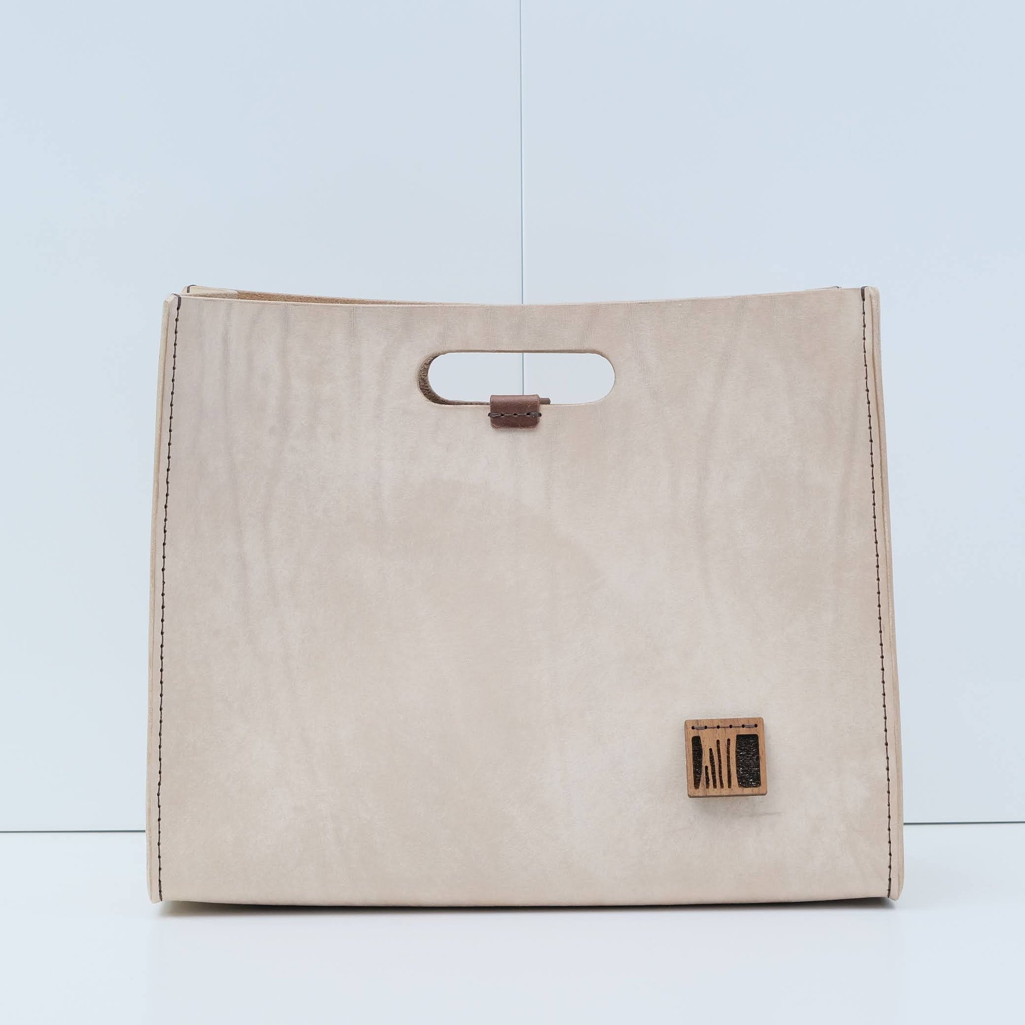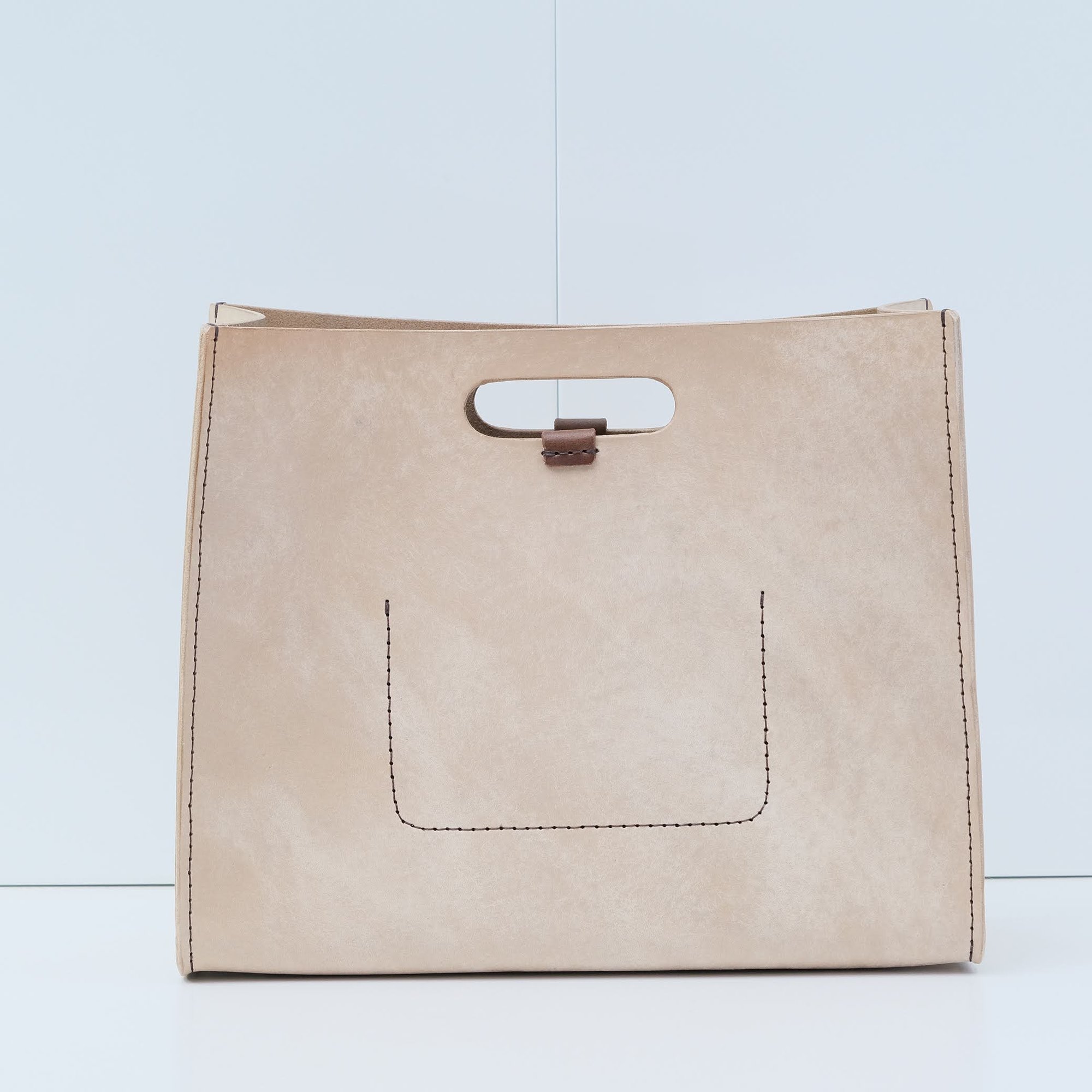 color: Smog; warm and cloudy structured leather. will develop a patina with use.